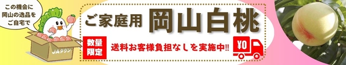 JA全農は、産地直送通販サイト「JAタウン」のショップ「おいしいおかやま」で、6月19日から、「岡山白桃お試しキャンペーン」と題して、「【ご家庭用】岡山白桃 9~15玉」を数量限定、お客様送料負担なしで販売しています。