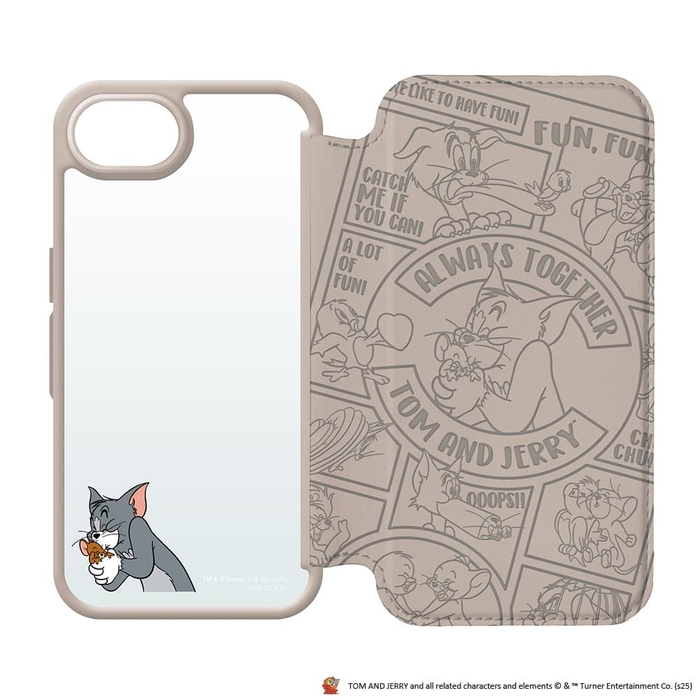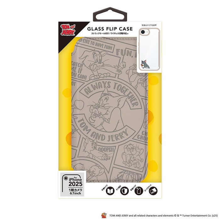 「トムとジェリー」デザインの機能性を追求したiPhone 16e用のガラスフリップケースです。