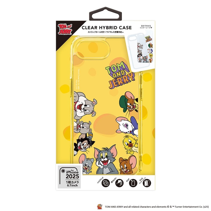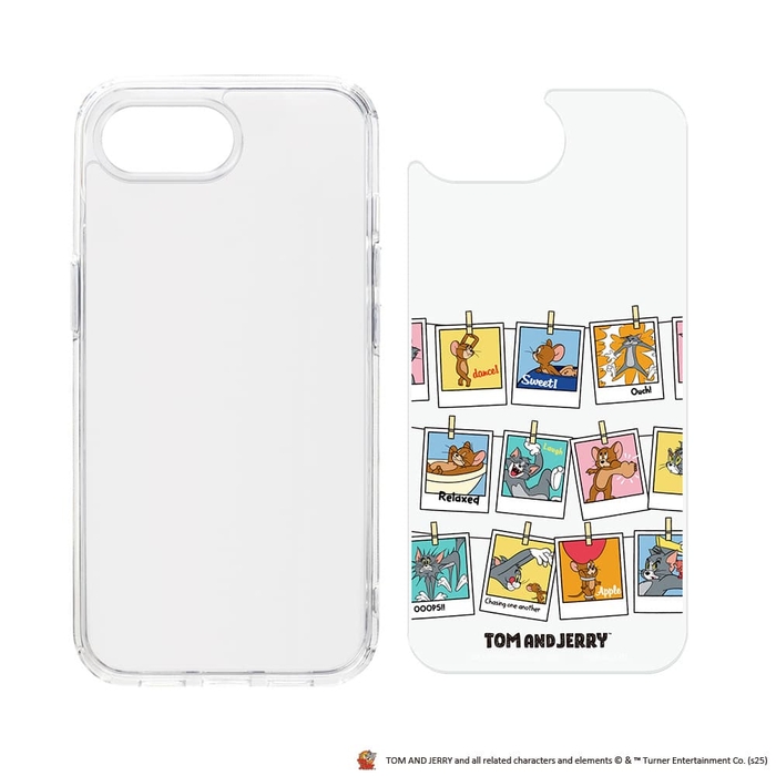 「トムとジェリー」デザインのインナーシートがセットになったiPhone 16e用のクリアハイブリッドケースです。