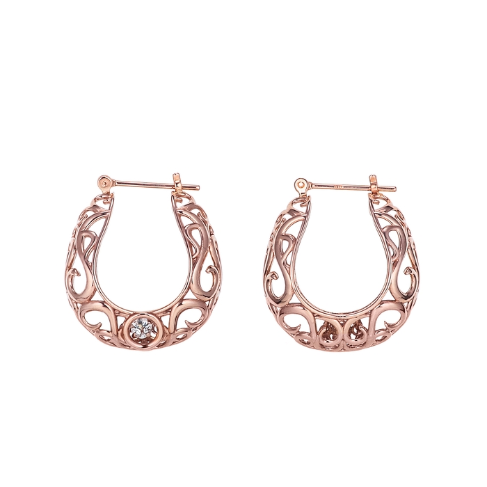 ピアスは正面から見るとドロップ型に、横から見るとホースシュー型と、見る角度によって印象が変わります。