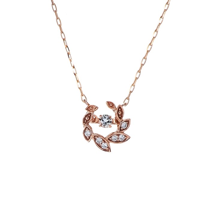ネックレスは、葉っぱが重なったようなデザインで厚みを持たせ、