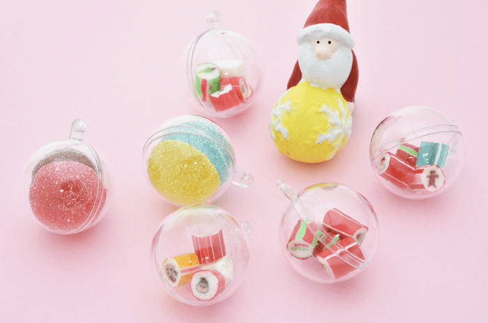 キャンディやバブレッツがかわいいカプセルに入った「オーナメントキャンディ」。クリスマスツリーやリースにはもちろん、そのままお部屋に飾るのもおすすめ。