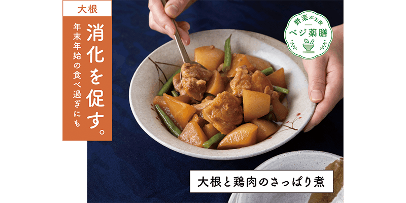 年末年始などで食べ過ぎが続くと体には熱がこもり、痰(たん)がたまりやすくなります。中医学では、大根は余分な熱を取り、痰を流すと言われているので、食べ過ぎ、痰やのどのつかえが気になるときにもおすすめです。