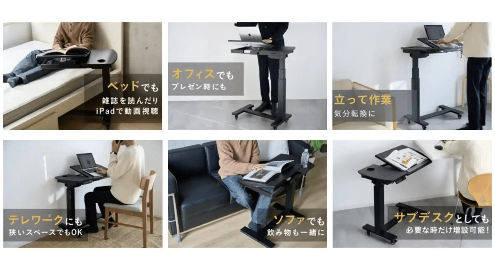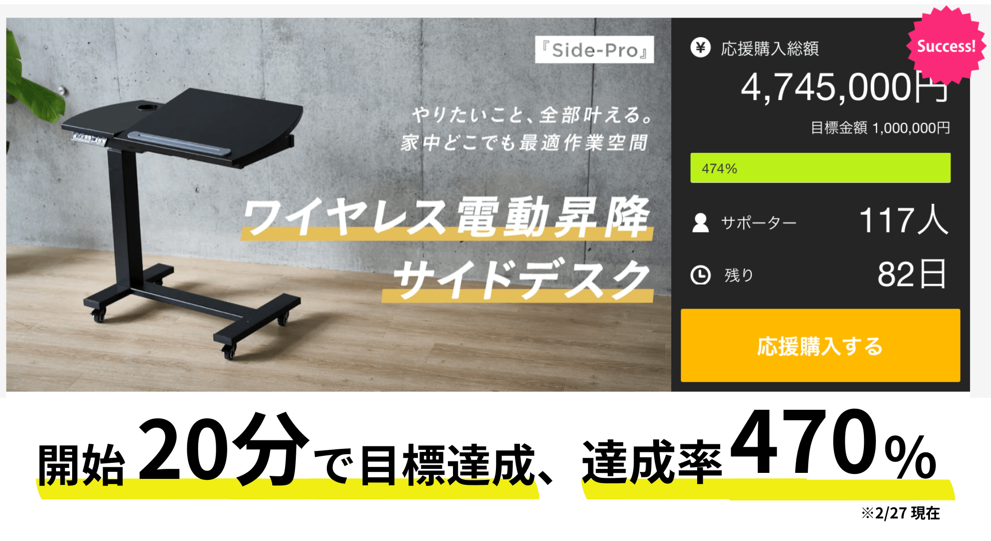公開20分で目標達成!コンセント位置に縛られない ワイヤレス電動昇降サイドデスク『Side-Pro』先行発売中!