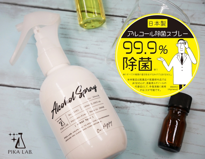 ピカラボアルコール除菌スプレーは、アルコールと除菌剤(※2)のダブルの成分を配合し、99.9%除菌(※1)で家や身のまわりのものをキレイに保つ商品です。