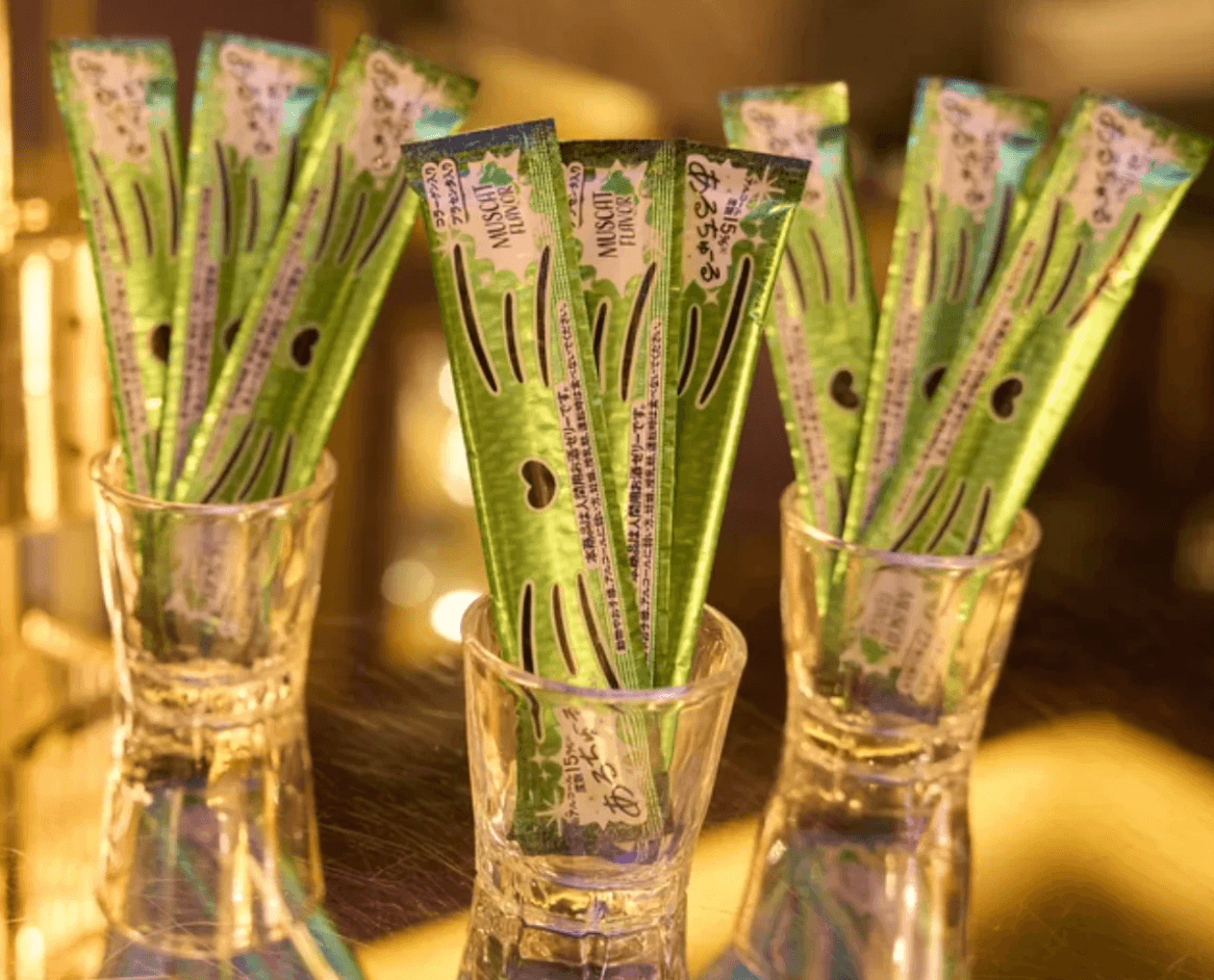 「あるちゅーる」は、手軽に楽しめるだけでなく、お客様同士、お客様とキャストのコミュニケーションツールとしても活用できる、日本初のスティック型アルコールゼリーです。アルコール度数15%で、コラーゲンやプラセンタなどの美容成分も配合しており、美味しく、楽しく、美しく過ごしたい方におすすめです。