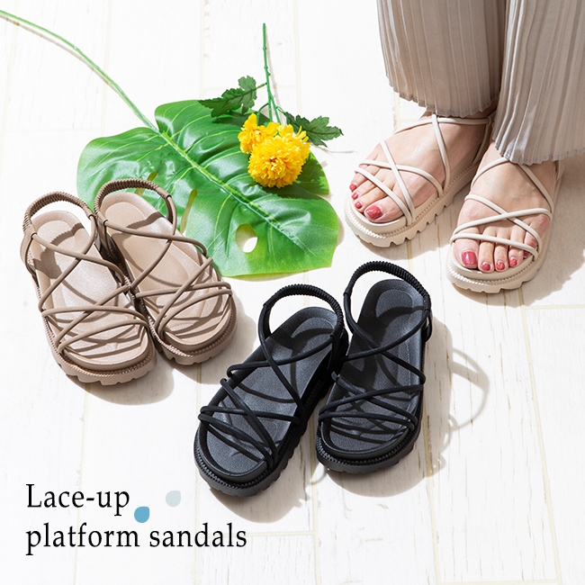 すっきりとした足回りを魅せる厚底スポーツサンダル
