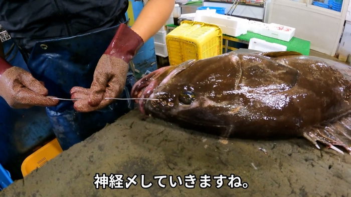 この美味しいクエを鮮度キープしたまま、旨味をアップさせるための魚の締め方が【神経締め】。