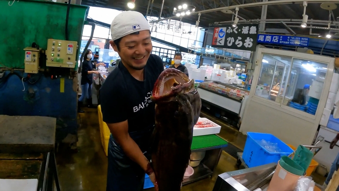 今回は山口県萩沖産で12・1kgでしたが、30kg以上の大物も釣り上がることがあります。
