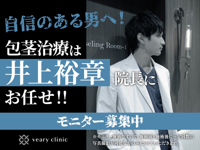 港区六本木(六本木駅 より徒歩3分)にある下半身美容が専門の美容クリニック「veary clinic(ヴェアリークリニック)」は、2022年9月1日〜2022年9月30日までの期間に「自信のある男へ!包茎治療は井上裕章院長にお任せ!!」キャンペーンを開催します。