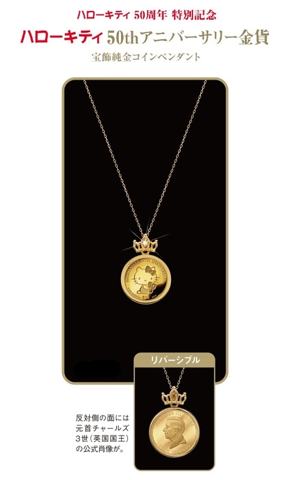 ハローキティ50周年特別記念<ハローキティ50thアニバーサリー金貨>純金コインペンダント、新発売!