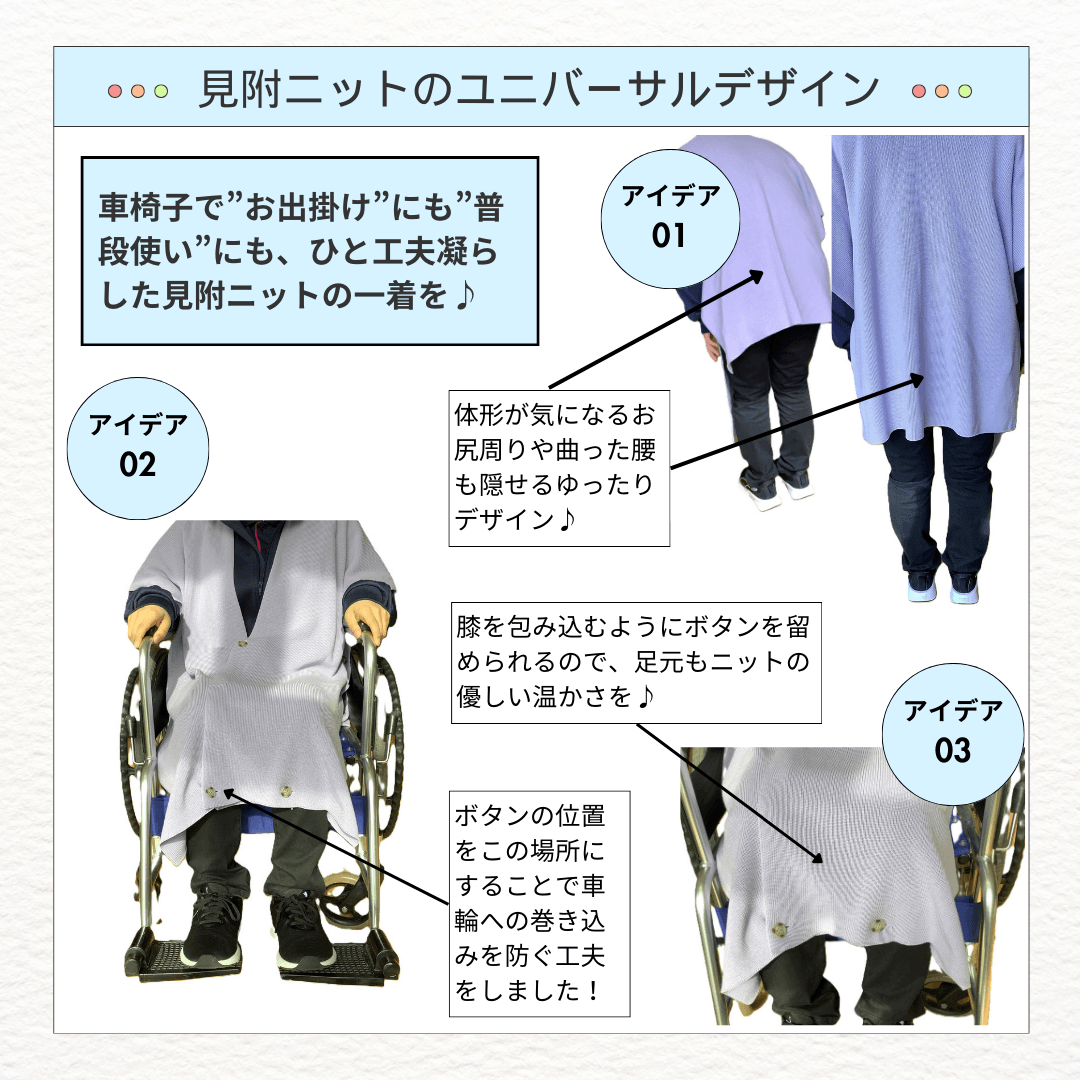 ◇介護の会社が企画開発を行い地元ニット会社に製造依頼をする事で、高品質な見附ニットをお求めやすくご購入いただけます