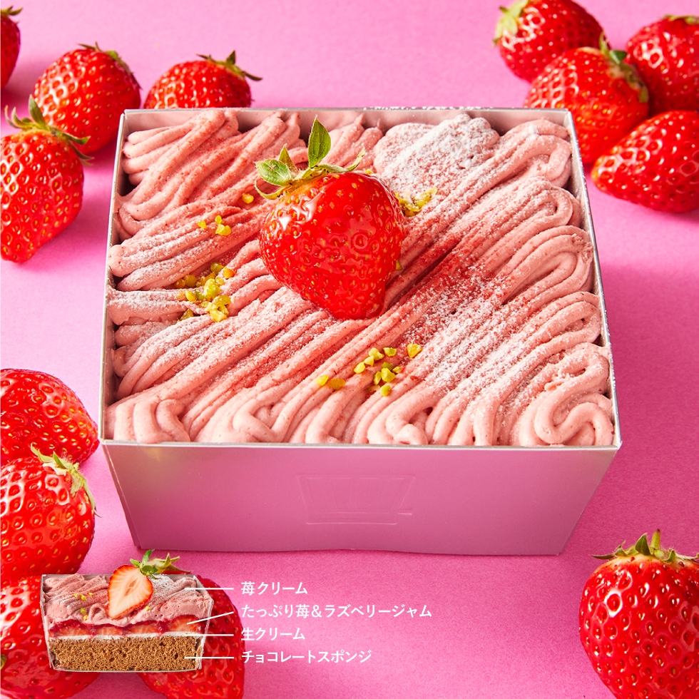 いちごとラズベリーの甘酸っぱさとチョコレートのハーモニーが楽しめるボックス型モンブランです。