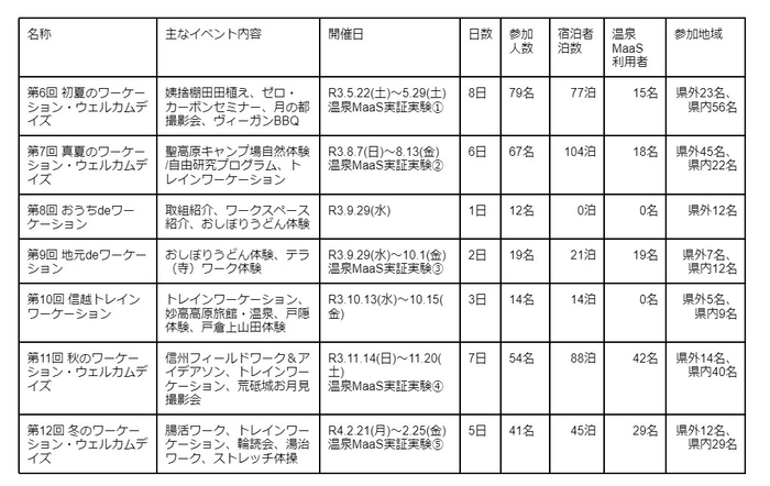 千曲市ワーケーション・ウェルカムデイズ開催実績