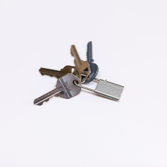期間中、10,000円(税込)以上お買い上げの方には、特典としてTiny Formed製の真鍮製のキーチェーンをプレゼント。ポケットやカバンに忍ばせやすいミニマルなサイズで、鍵が3〜4本まとめられます。