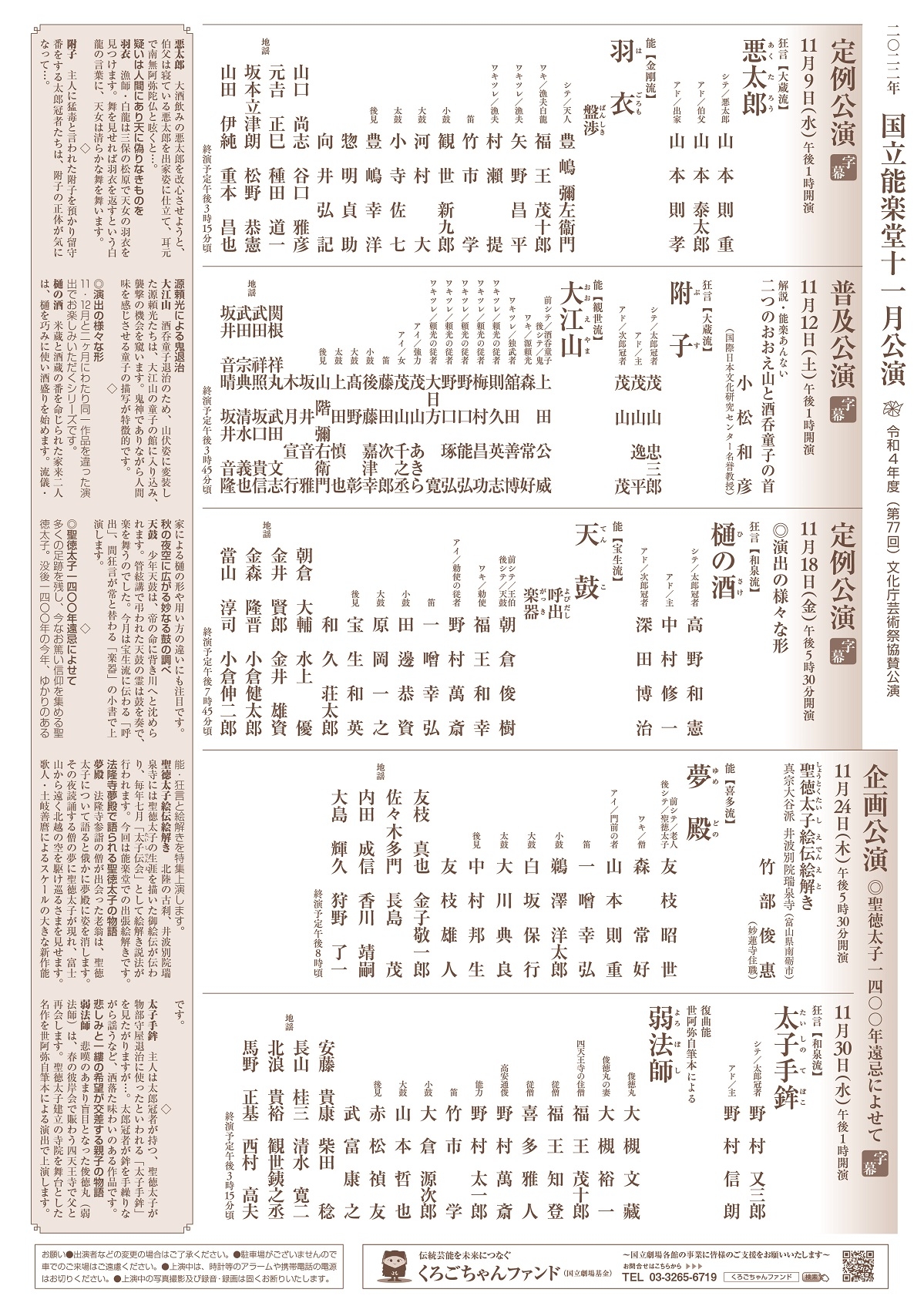 11月定例公演 樋の酒・天鼓 / 2022年11月18日(金)午後5時30分開演