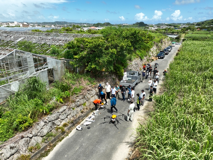 ドローンキングが沖縄県糸満市でサトウキビ畑の散布デモを開催し活況