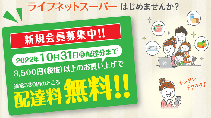 ライフネットスーパーのページをご覧いただき、お届け先が配達エリア内であれば、ご登録完了後すぐにご注文いただけます。