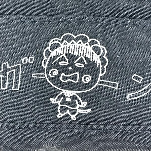 ポリエステル素材。サイズは、12cm×11cm×4.5cm。カラビナをカバンに付けたら、なくなりません。表面にはポケットが1つ。