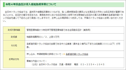 全日本トラック協会 令和4年度血圧計導入促進助成事業について