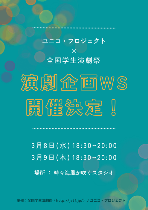 「全国学生演劇祭」×「ユニコ・プロジェクト」、学生向けワークショップを3/8~9に開催!