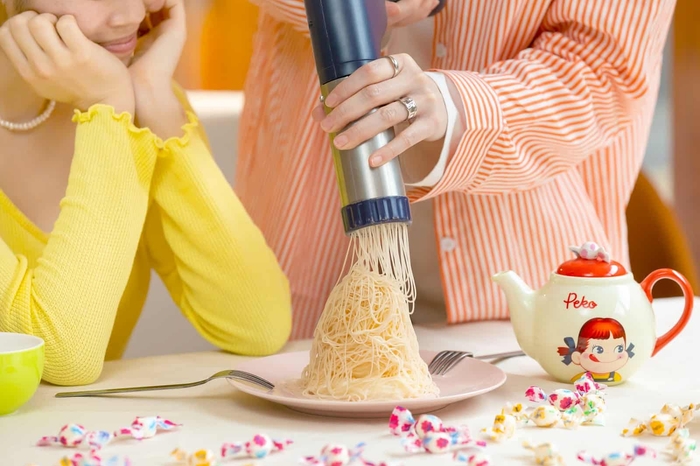 BEB5沖縄瀬良垣は、ミルキー風味のオリジナルジェラートを用意。さらに、可愛いペコちゃんポットに入ったミルキーソースも!ミルキー風味のオリジナルジェラートにかけてミルキー感を増すのもよし、紅芋や島豆腐の味にかけるのもよし。思う存分ミルキーを楽しめます。