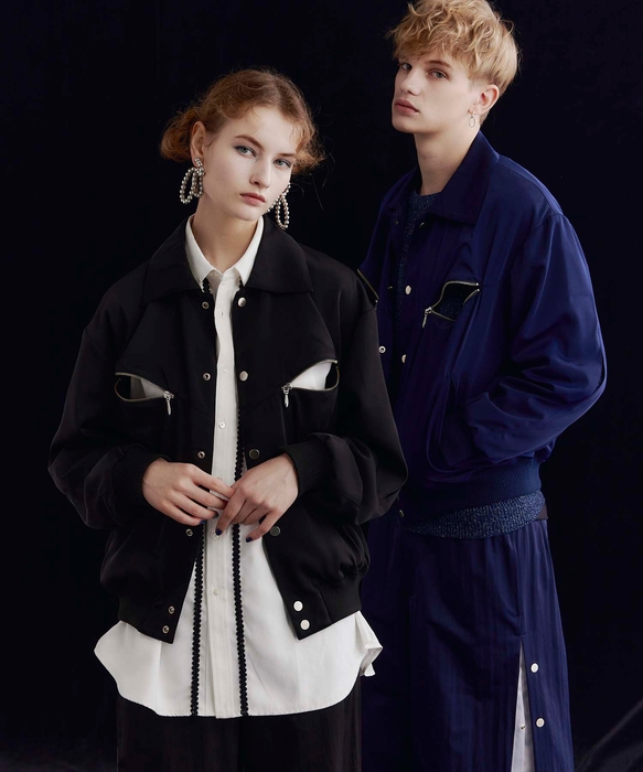 スタジアムジャンパーをデザインソースとしたショートブルゾン。