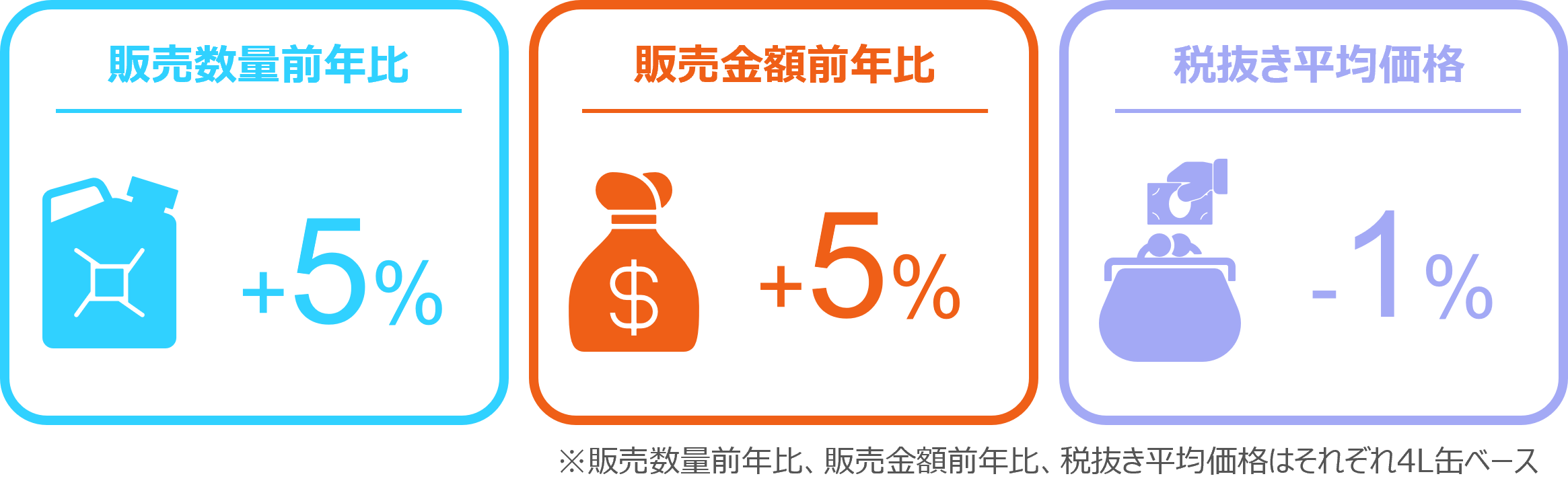 2025年1月の自動車用エンジンオイルの4L缶販売は、数量前年比5%増と前年を上回り、店頭では同5%増、インターネットでは同12%増であった。4L缶の主要な粘度では、0W-20が数量前年比1%減であったが、5W-30が同6%増、0W-16は同18%増と伸長した。4L缶の税抜き平均価格は4,072円と前年同月から1%下落し、店頭では前年並みであったものの、インターネットでは4%下落した。4L缶全体の金額前年比は5%増となり、店頭では4%増、インターネットでは7%増であった。