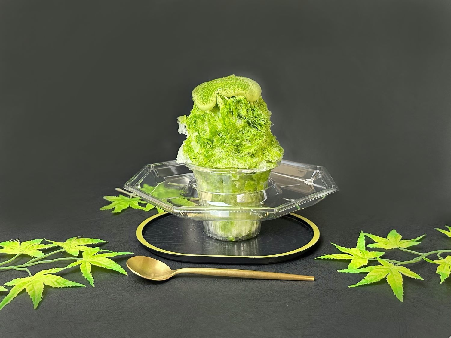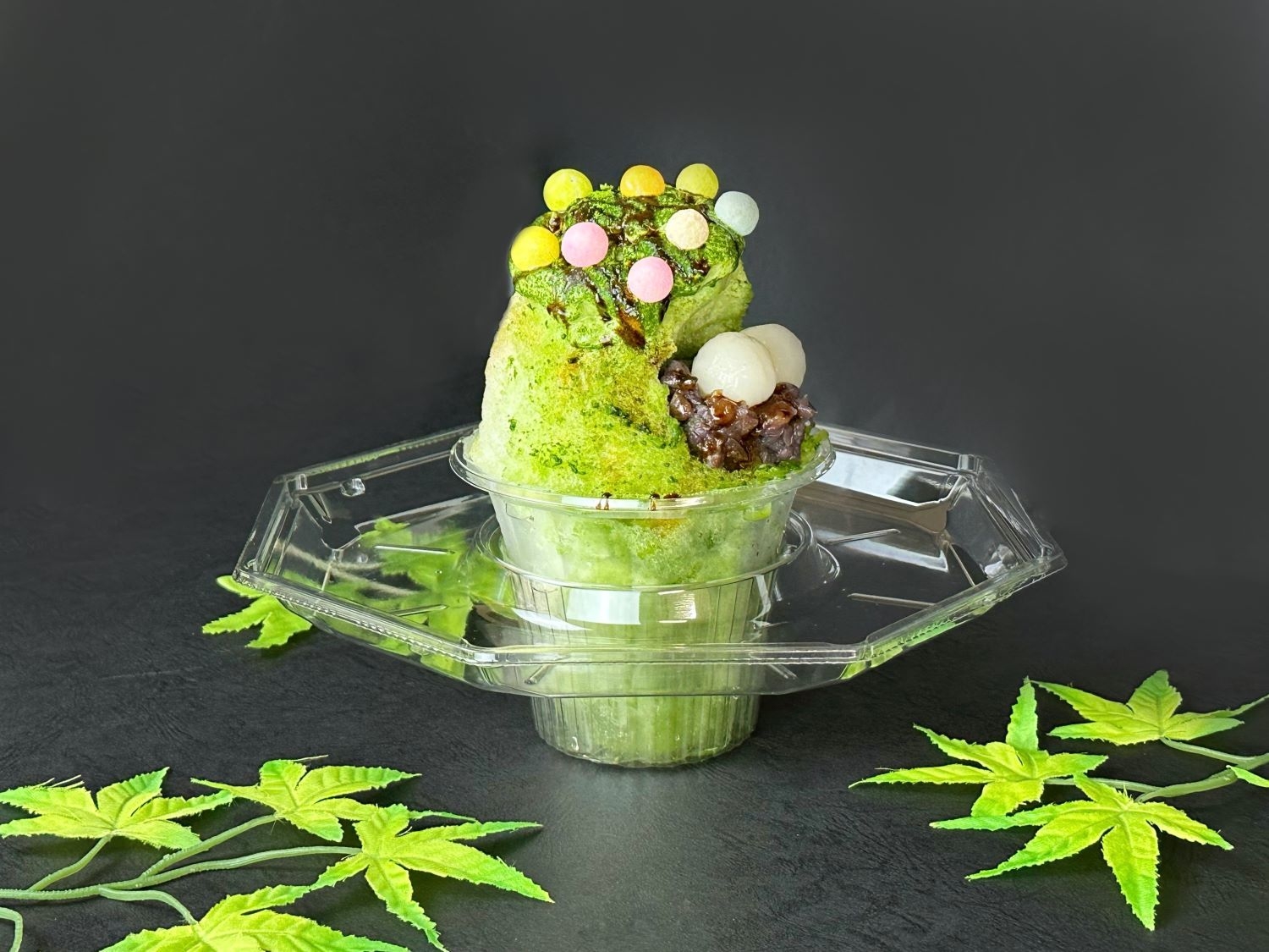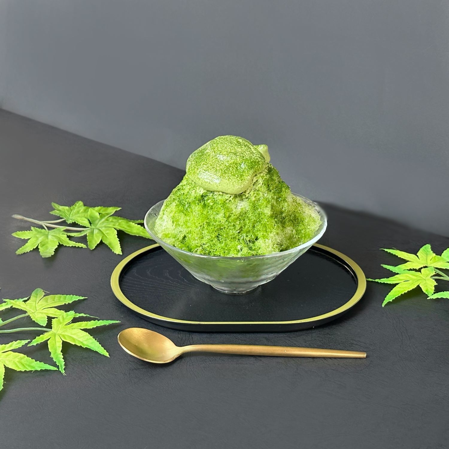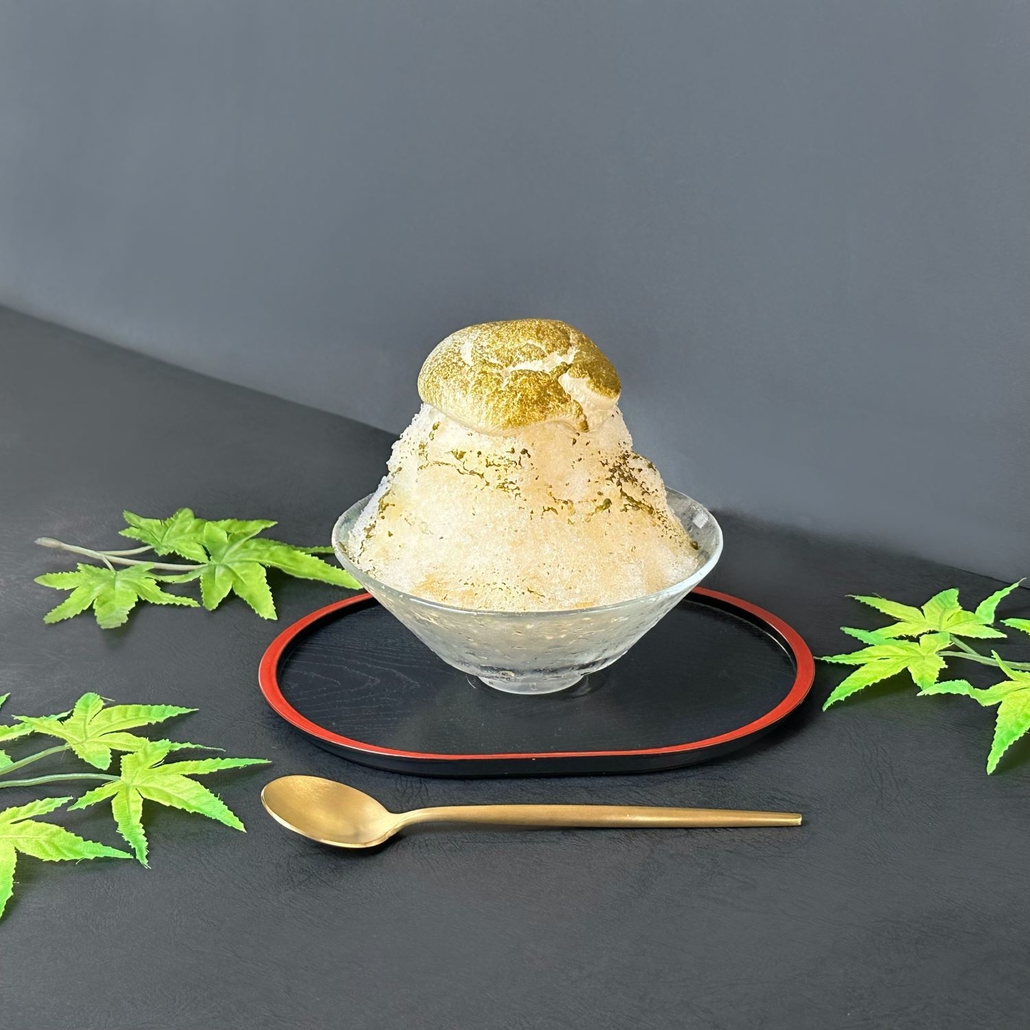 高級抹茶と100年以上愛されている看板商品でもある妙香園のほうじ茶を使用したかき氷。