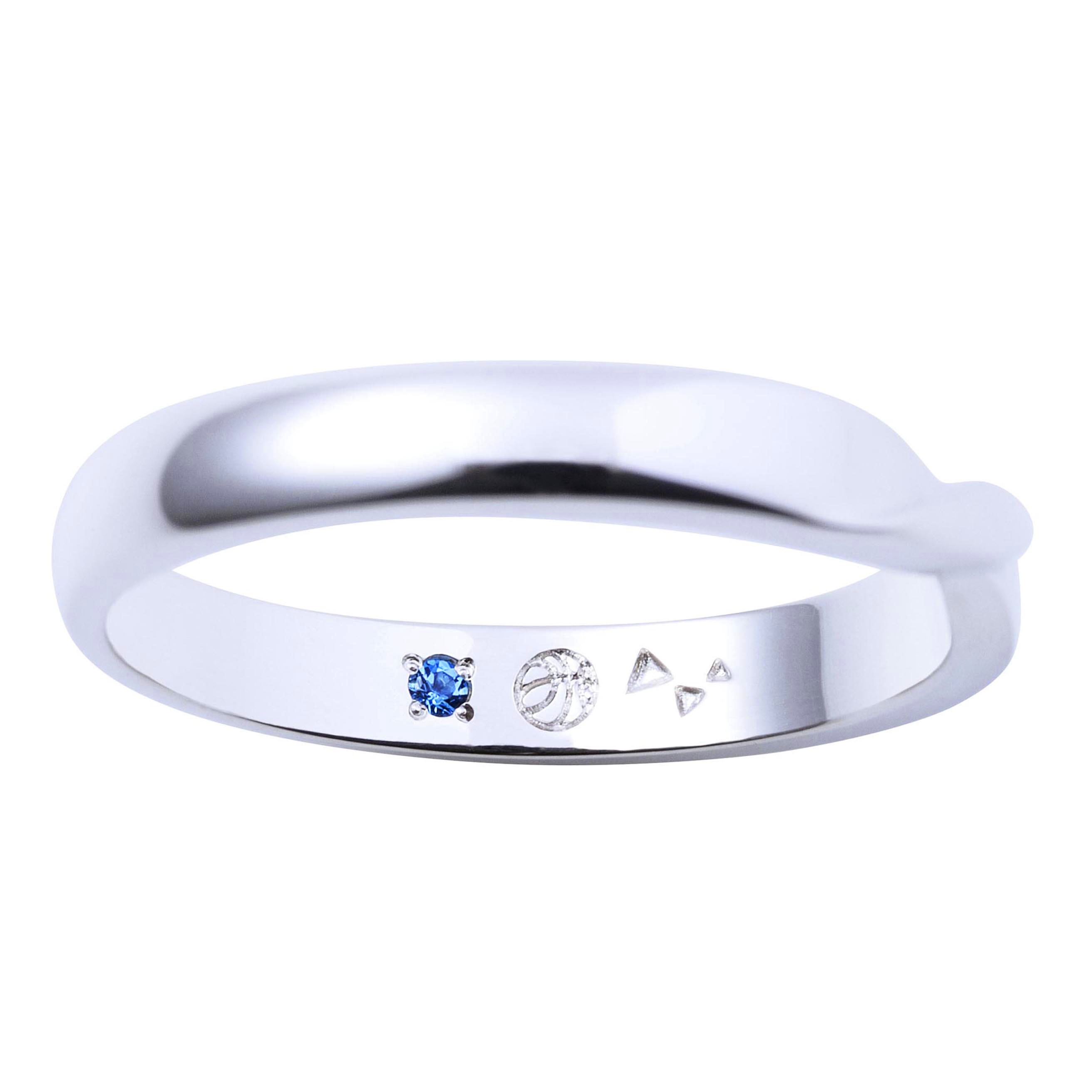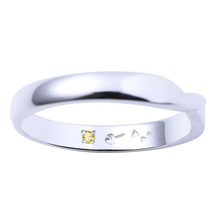 中央部分がツイストされたシンプルで普段使いしやすいデザインに仕上げました。内側にはイメージカラーストーンと、ピアスのアイコンを刻印しました。