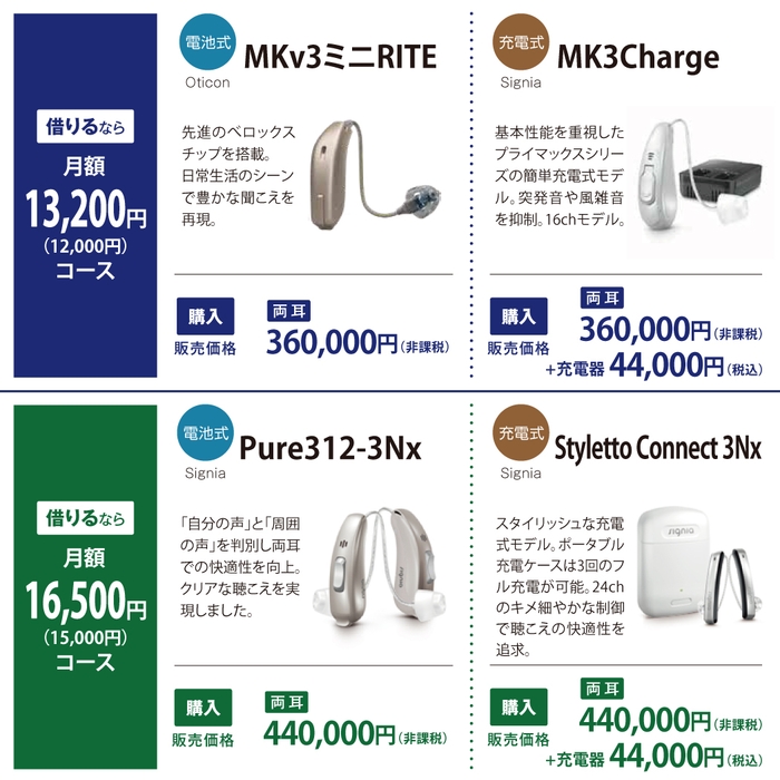 補聴器従来のイメージを覆すスタイリッシュで高機能な最新補聴器を身近に感じながら、手軽にご利用いただけます。