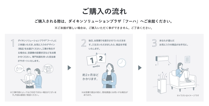 『The Art Line』は、ダイキンのショールームである「ダイキンソリューションプラザ フーハ東京・フーハ大阪」にて販売します。ダイキンの国内のショールームで商品を販売するのは初めてです。全ての実物のデザインパネルを手に取って色味や質感を確認できます。