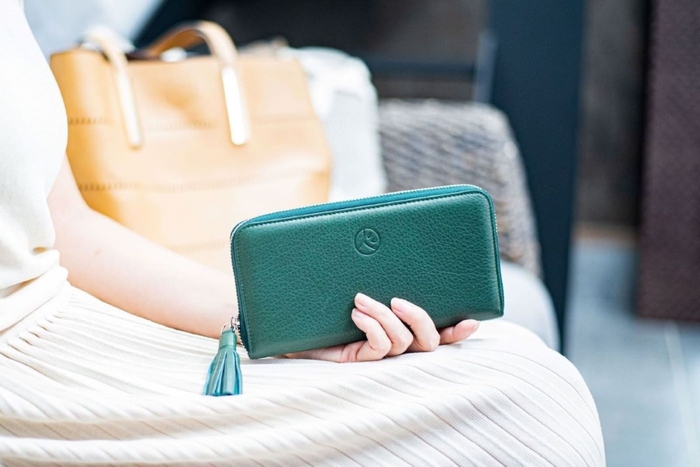 また、安定した蓄財を呼び込む色として縁起のよい「深緑」の革財布は、凛とした品格が漂い、心まで豊かになれる色合いです。