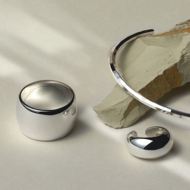 毅然とした荘厳な景色の中を、軽やかに吹き抜ける風、満ち欠ける月の光。自然の持つ揺るぎなさと、光が織りなす移ろいの二面性に着想を得た、SUBLIME(サブライム)コレクション。気高い景色を纏うことで、五感が研ぎ澄まされる。まっすぐ歪みのないラインに、高硬度PURE SILVER 999の澄みわたる光がさし、対比するマットな質感が共存するラインナップ。