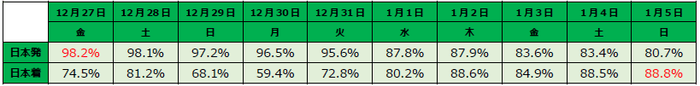 ※日本発・日本着それぞれ、一番高い搭乗率を赤で表記しています。