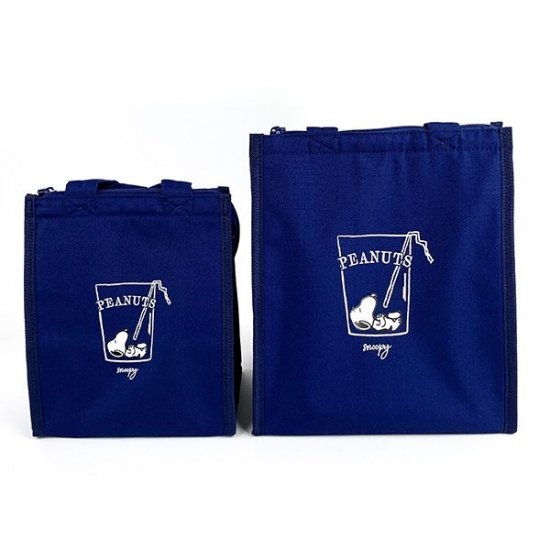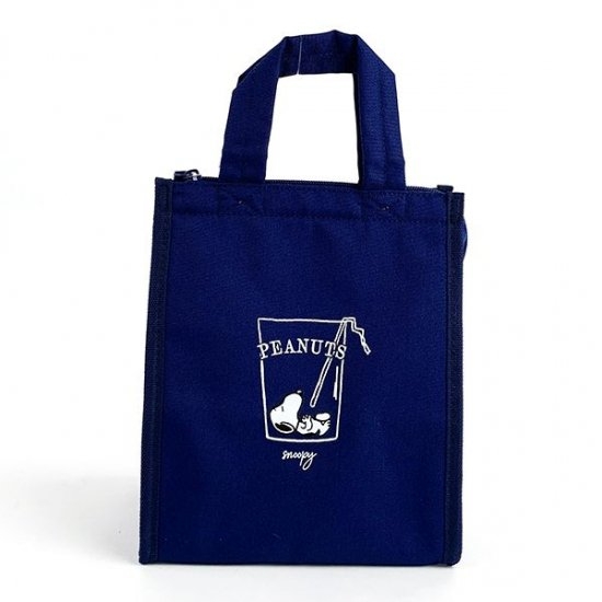 ネイビーの本体にグラスに入ったスヌーピーのデザインがかわいい、ランチバッグです。縦長のフォルムで、スタイリッシュな雰囲気もありますよね。持ち手部分も長めなので、肩にかけることも◎