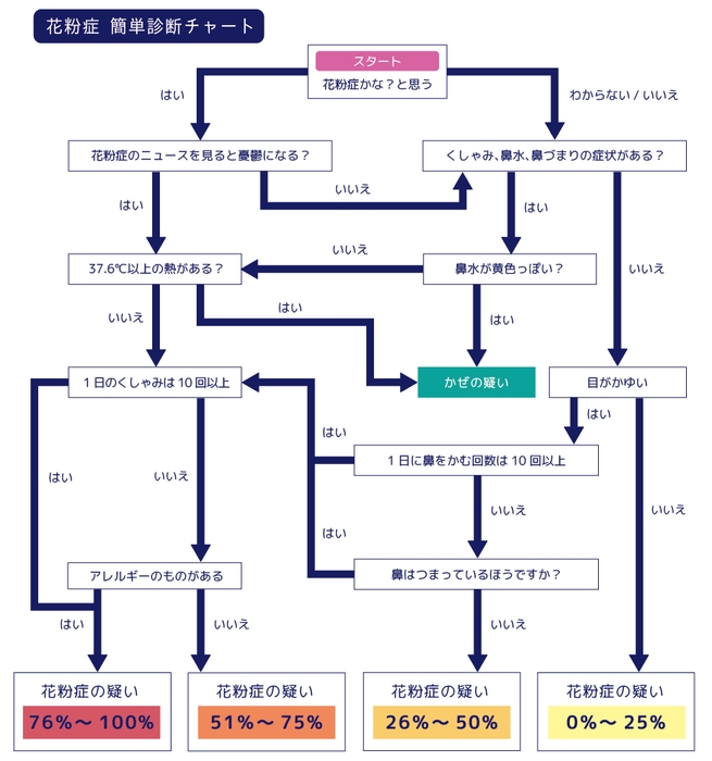 ご自身が花粉症かどうか下記のフローチャートを使って確認してみましょう。