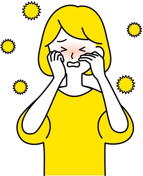 花粉症は、花粉に対して人間の体が起こすアレルギー反応です。体の免疫反応が花粉に過剰に反応して花粉症の症状が出ます。くしゃみ、鼻水、鼻づまりや目のかゆみ・異物感などが主な症状です。