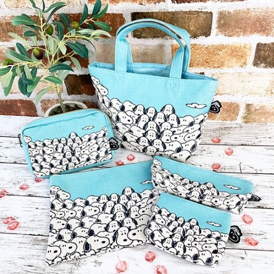 スヌーピーから、とびきりかわいい新デザインが加わりました。スヌーピーがアイテムからあふれんばかりにたくさん集まっているデザインです。夏らしいカラーや素材感にも注目ですよ。