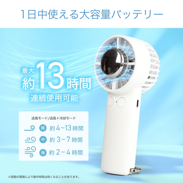 《最大13時間連続使用》夏の野外イベントやスポーツ観戦でも一日中使えるハンディファン