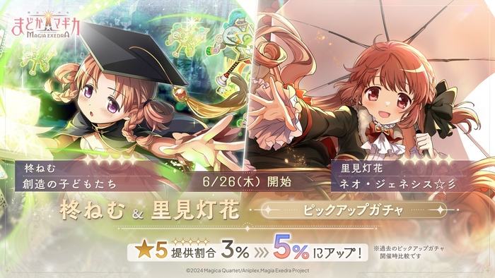 また、新たに実装となった★5キオク [ネオ・ジェネシス☆彡]里見灯花(CV 釘宮理恵)、[創造の子どもたち]柊ねむ(CV 諸星すみれ)が登場するピックアップガチャも開始いたしました。