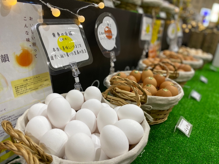 ゆずや酒かす風味のたまごや、黄身が真っ赤なたまごに真っ白なたまごも。