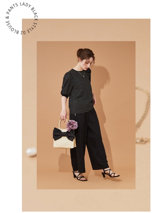 最新のコレクションの中から、夏のブラックスタイルをテーマにコットンボイルの刺繍ワンピース、ポルカドットやブロックチェックの柄アイテム、4通りの着こなしが楽しめるブラックパンツなどを合わせたスタイルをご紹介しております。