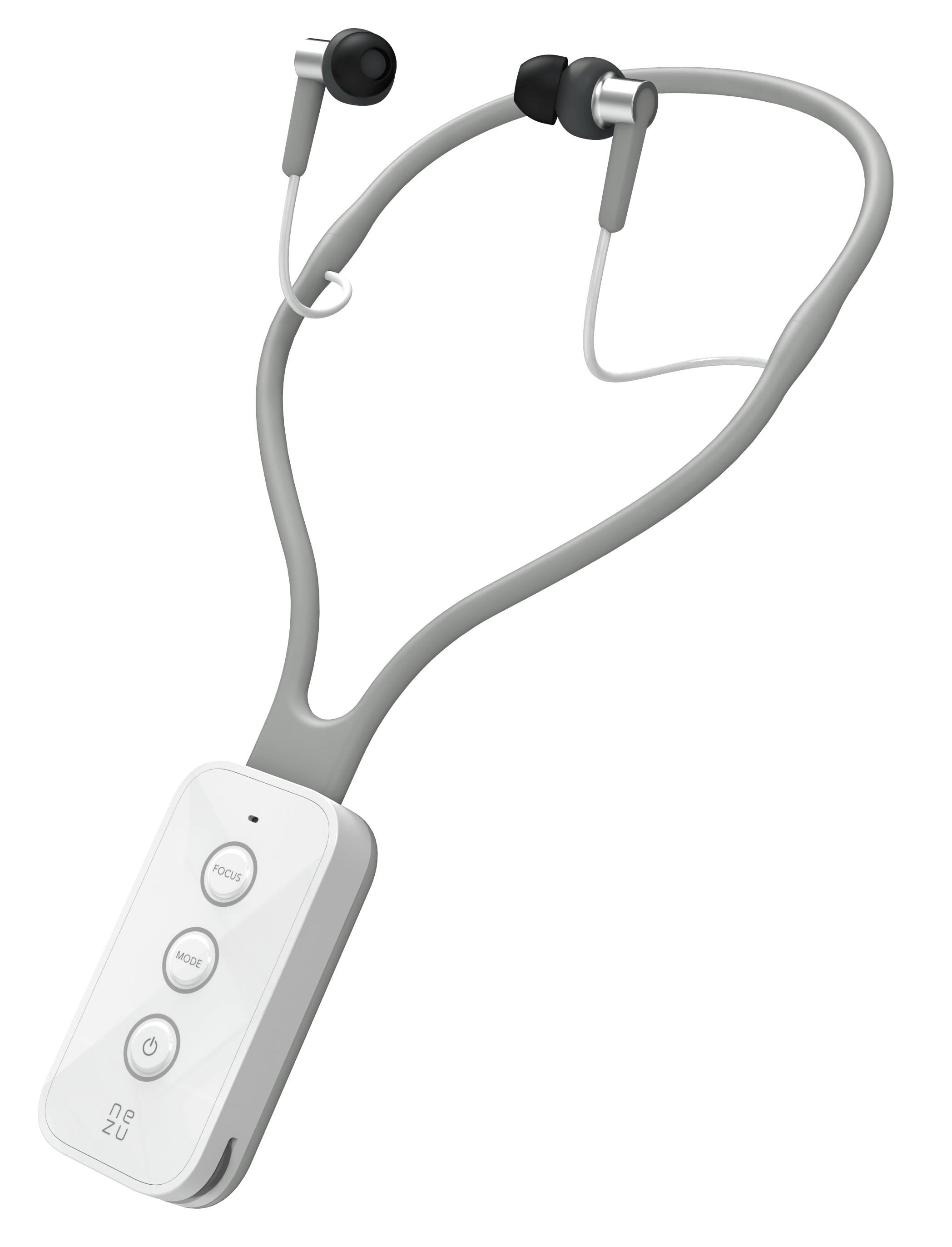 骨伝導集音器「Vibone Nezu」は、一般に使われている磁石とコイルで振動を発生する電磁式の骨伝導の課題とされる「話し声」など、中高音の伝わりにくさを克服し、広帯域、高解像度の振動音を生み出す「圧電セラミックス」の振動子を採用しました。更に、振動力学に基づく装着方法(特許取得)で小型・軽量化を実現した、一般的なイヤホンと変わらない形状のユニバーサルデザインの骨伝導イヤホンです。イヤホンと一体化した集音器は本体に高性能マイクを内蔵し、左右別々に音量の調整ができるのも特徴です。イヤホンは耳の大きさなどに合わせ9通りの大きさを用意し、外部入力端子でスマートフォンと接続すれば音楽も楽しめます。また、鼓膜を通さず蝸牛へ振動音を伝えられるため、耳に負担をかけず難聴予防として使用することもできます。