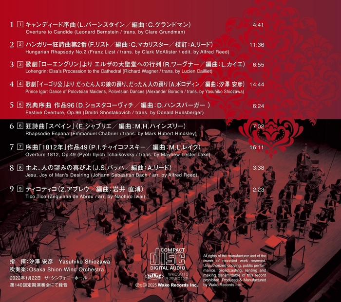 日本で最も長い歴史と伝統を誇る交響吹奏楽団のOsaka Shion Wind Orchestraを有する公益社団法人 大阪市音楽団(本社:大阪市住之江区/理事長:石井徹哉)は、汐澤安彦が指揮を勤めたCD『だったん人の踊り』のリリースを決定いたしました。