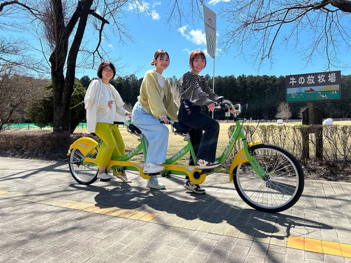 広大な敷地を駆け抜ける全長4㎞のサイクリングコースは、紅葉に染まる千本松神社や松方正義別邸を巡る絶好のルート。親子三世代でも楽しめる2人乗り・3人乗り自転車で、牧場ならではの秋の景色を堪能できます。
