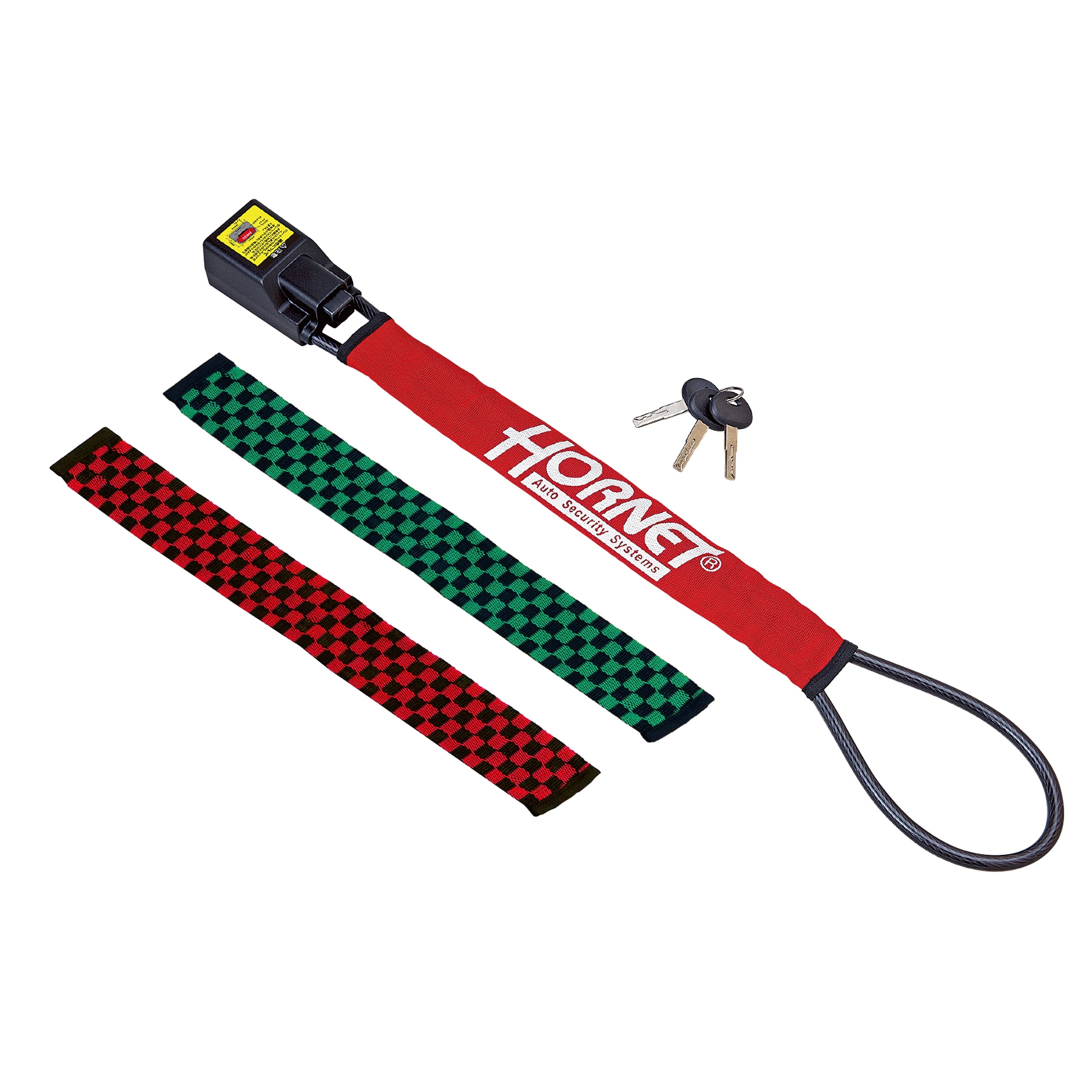 着せ替え保護カバー市松模様 赤黒付き!加藤電機 HORNETメタルワイヤー式ハンドルロックLH-3SR-R ラッピング無料!