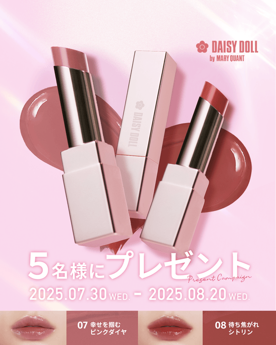 デイジードール公式Instagram・Xの特別企画!リップスティーラー秋の新色プレゼントキャンペーンを8月20日(水)までの期間限定で開催中!フォロー&いいねの簡単応募で新色2色から好みのカラーが当たる!!たくさんのご応募をお待ちしております!