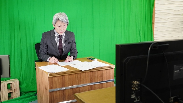 慣れた様子でCG用のグリーンバックを背負った登坂さん、その姿に「すごい!」「見たことあるやつ!」とスタジオ中から大歓声が!実は今回登坂さんには業界新聞の最新ニュースを伝えてもらうということで、ニュース読みにぴったりの背景をご用意。本人が「やっぱり皆さんこれが好きなんですね(笑)」とこぼしたCG、仕上がりは放送で!