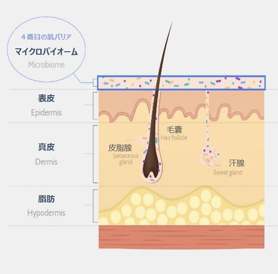 微生物を意味する「Microbe(マイクローブ)」と生態系を意味する「Biome(バイオーム)」が合わさった言葉で、その成分は土壌や植物由来・大腸由来から始まり、現在ユイクで使用されているマイクロバイオームは、第三世代となる「スキンマイクロバイオーム」と呼ばれています。人体由来のマイクロバイオームなので、敏感な肌にも使用可能で刺激も少なく、皮膚のマイクロバイオームのバランスを整え、肌の有益菌を活性化させる化粧品となっています。